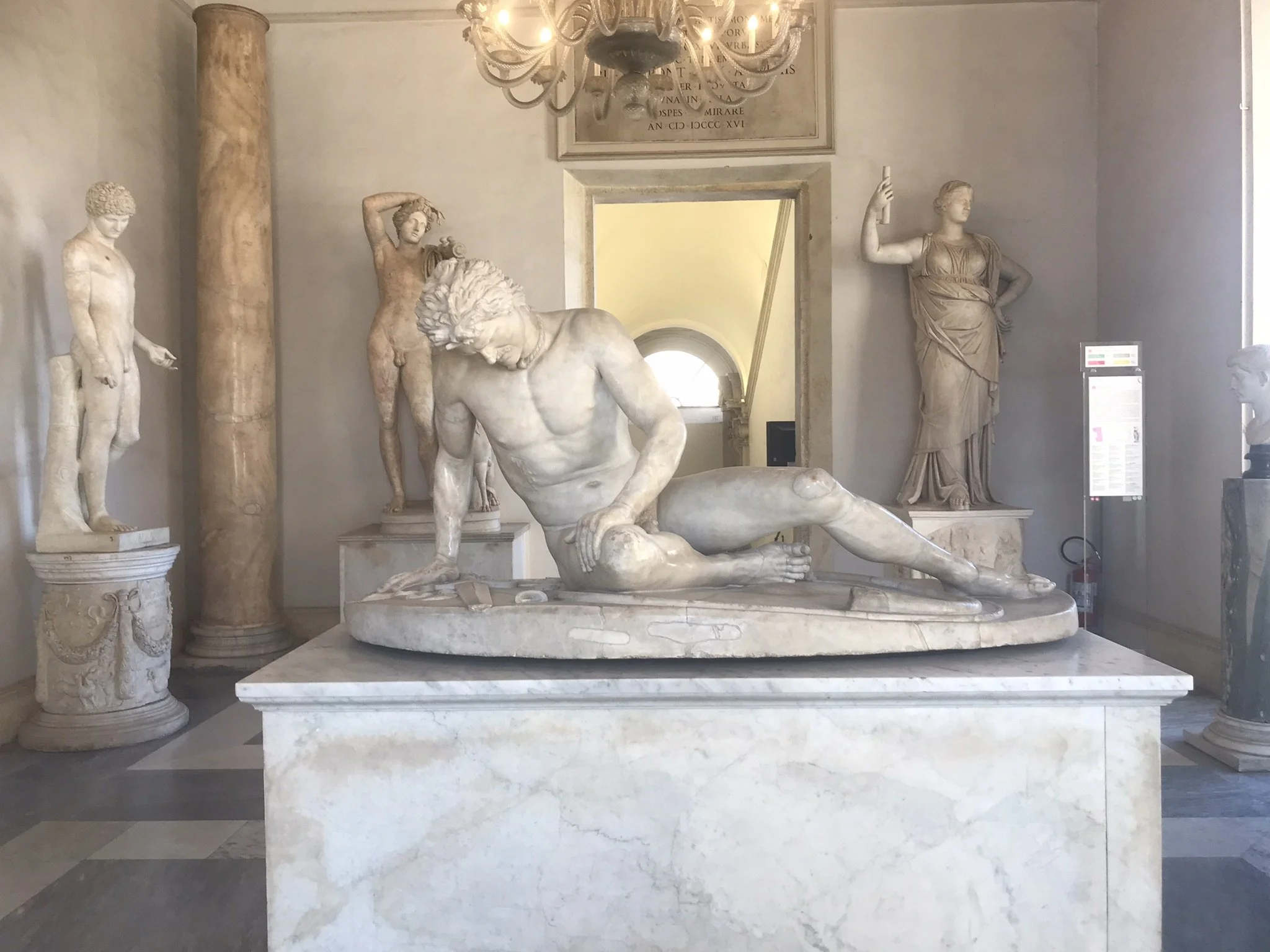 Though Pisa had been lovely, and Florence thrilling, Rome was again on the menu the last day of our trip, as we were flying out of Fiumicino. We had packed our bags the day before in order that we might explore a few more things, foremost of which were the Capitoline museums and the Roman forum with a quick gander round atop the Palatine hill. The museums pleased me the most that day as I finally got to see the statue of “The Dying Gaull” which I have idolized for years. In truth, however, there is so much art and artefact of the ancient Greco-Roman world in these locals that one is easily overwhelmed at both their beauty and number alike. Needless to say, we got our fill, though a guided revisit wouldn’t go amiss in the future. And that too goes for the Forum where we, in retrospect, only pranced around. Regrettably, we found ourselves rushing through these historic attractions because we were all together pressed for time, melting away in the heat, and eager to quench our hunger and thirst. So did our site seeing end, and our journey home begin as we precipitously made haste for the central station and hopped on the train to the airport with pizza slices and soft drinks to go in hand.